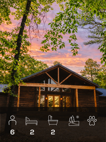A beautifully designed two-bedroom cabin with upscale finishes and inviting touches throughout. Pet friendly.